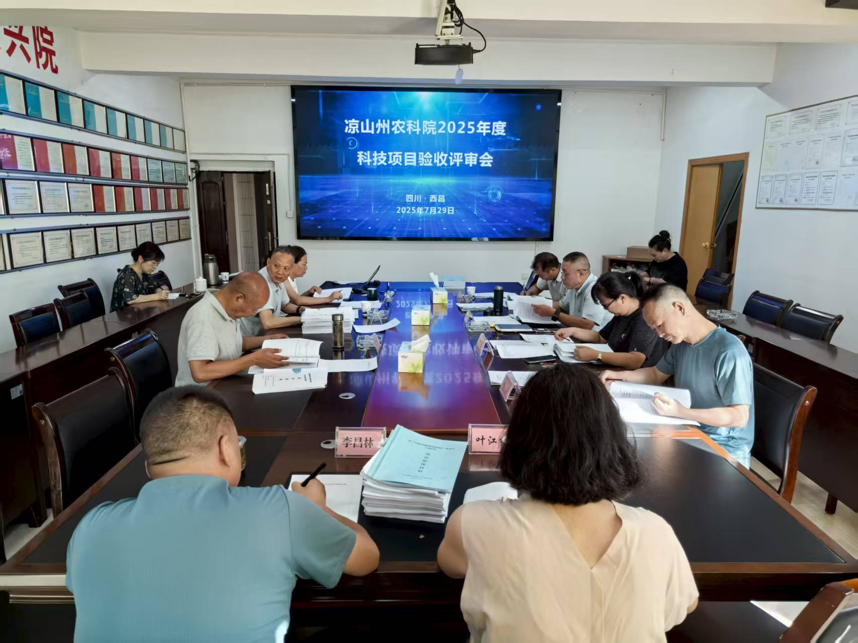 2025年7月29日,院科管科组织专家对州农科院科技项目进行了会议验收。专家组由研究员黄卫平、正高级畜牧师何子拉、正高级兽医师张涛、正高级农艺师潘俊峰、正高级农艺师李润、高级农艺师岳清超和计财科高级农艺师叶江红7位专家组成,院纪委委员李昌林全程监督。会议由院党委副书记、二级研究员刘绍文主持。