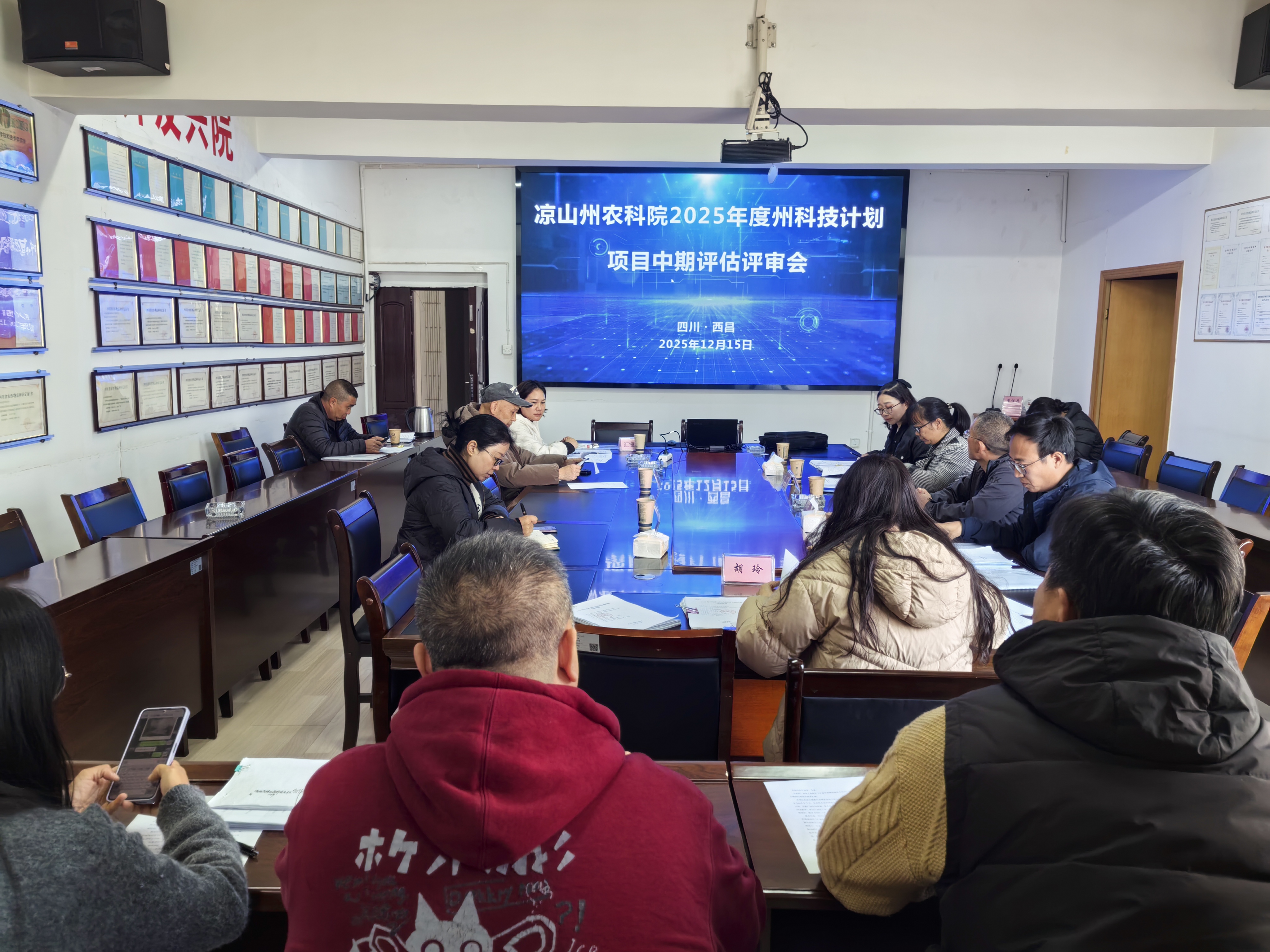 2025年12月15日,按照《凉山州科学技术局关于开展2025年度州级科技计划项目中期评估工作的通知》(凉科局〔2025〕103号)文件要求,院科管科组织院学术委员会专家对州农科院2024年度承担的州级科技计划项目进行了中期评估。专家组由正高级农艺师王云梅、正高级农艺师李润、研究员杨世忠、高级农艺师胡玲和高级畜牧师刘晓波5位专家组成。会议由院党委副书记、二级研究员刘绍文主持。