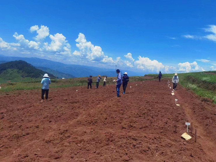 罗晓玲团队在越西县梅花镇白果村、打土村考察,就秋收后土地再利用与当地干部群众进行讨论,指导农户在海拔1300-1500m的区域收获玉米、马铃薯后种植一荞麦,增加收入。根据梅花镇彝山彝海餐饮文化发展有限公司发展需求,特派团前期专程前往考察论证后,认为公司基地位于海拔2300m的高山上,气候凉爽,适合种植荞麦,可以利用甜荞花的观赏性打造农业景观,吸引游客,发展乡村旅游。这次准备了2亩红色花、1亩粉色花、1亩白色花的甜荞种子亲自播种在风景秀丽的公司基地,生长中期将前往管理,观察试验结果。如果花期正常,明年将认真规划设计,扩大播种面积,为该公司农文旅融合发展锦上添花,为越西县乡村旅游增辉添彩。