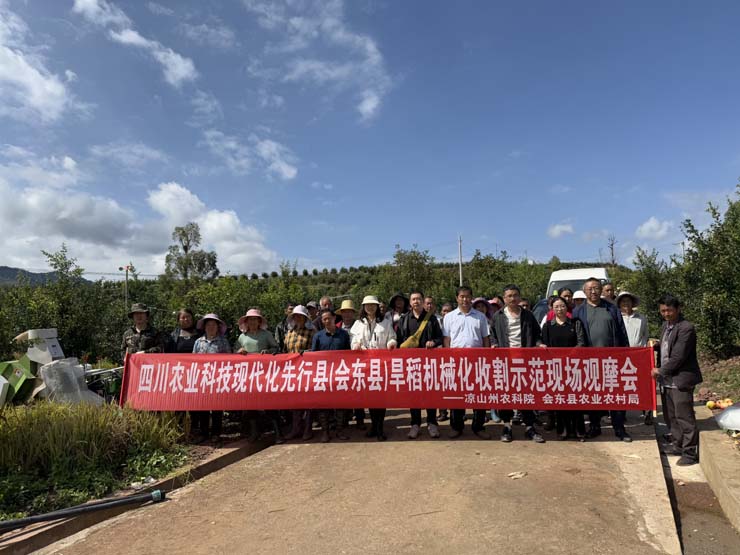 会东先行县粮经融合项目石榴园区套种旱稻机械化收割现场观摩会成功举办