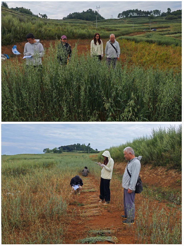 2025年根据前期的产业调研和与有关企业负责人交流后发现,目前美姑县缺少专门的燕麦饲草品种,美姑县急需产量高,品质好的饲草品种。2025年国家重点帮扶县美姑县科技特派团荞麦产业组联合四川省麦类创新团队燕麦饲草岗位专家彭远英教授团队,在拉马产业园区开展了荞麦和燕麦的新品种试验示范,以求筛选出适宜当地种植的优质高产燕麦饲草和荞麦品种。2025年8月国家重点帮扶县美姑县科技特派团荞麦产业组成员刘纲和四川省麦类创新团队燕麦饲草岗位专家彭远英教授团队成员,前往贵果集团美姑帆梦农业有限公司拉玛粮油园区开展田间调查和帮扶工作。此次工作主要围绕以下内容展开:一是荞麦燕麦试验地田间调查,相关数据收集,并进行归纳总结;二是为园区管理人员及农户就近期在荞麦和燕麦生产过程中遇到的问题,现场解答,并给出指导性建议;三是了解园区及周围今年荞麦燕麦的种植情况,为后续的产业规划提供依据。