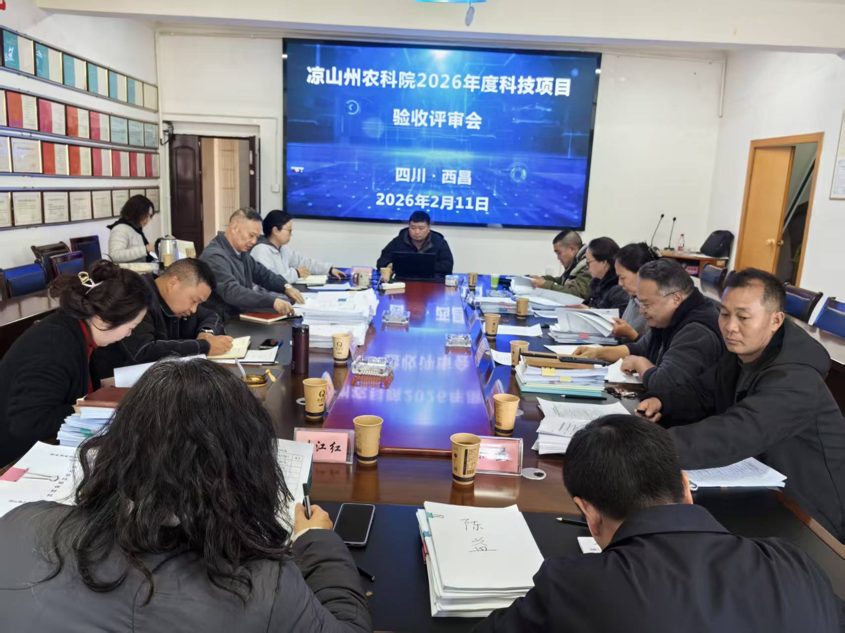 2026年2月11日,按照《四川省农业科学院科技成果中试熟化与示范转化项目及经费管理细则(试行)》(农院发〔2023〕4号)、《凉山州农业科学研究院科技项目管理办法》(凉农〔2025〕5号)文件要求,院科管科组织院学术委员会专家对我院2024-2025年度中试熟化与示范转化项目暨2026年科技项目进行验收。专家组由院党委副书记、二级研究员刘绍文,副院长、研究员黄卫平,正高级农艺师罗晓玲,正高级畜牧师符俊,高级农艺师单会霖,高级农艺师岳清超,高级农艺师胡玲,高级畜牧师陈益和高级农艺师叶江红9位专家组成,院纪委委员李昌林全程监督。
