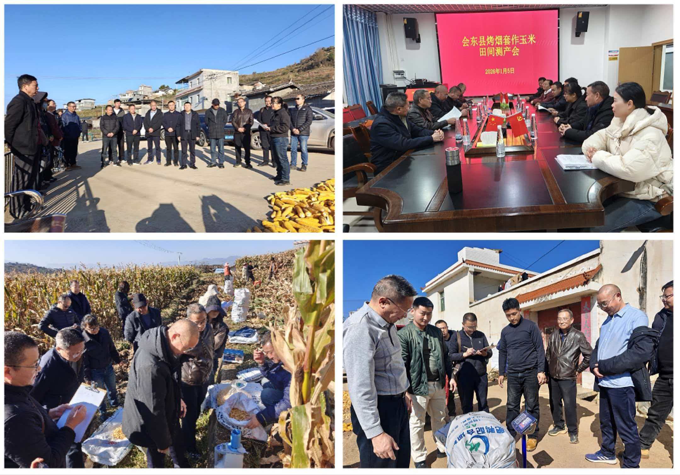 1月5日,由凉山州农业农村局、西昌学院、冕宁县农业农村局组成的专家组,到会东县嘎吉镇嘎吉村,对凉山州农科院与会东县农业农村局联合打造的1500亩“粮烟融合”烤烟套作玉米千亩展示片开展玉米测产验收。以科学数据检验粮烟协同种植模式的成效,为会东县农业提质增效、农民增收致富提供坚实支撑。凉山州农科院党委书记罗叶、会东县相关单位、乡(镇)街道负责人参加测产验收。